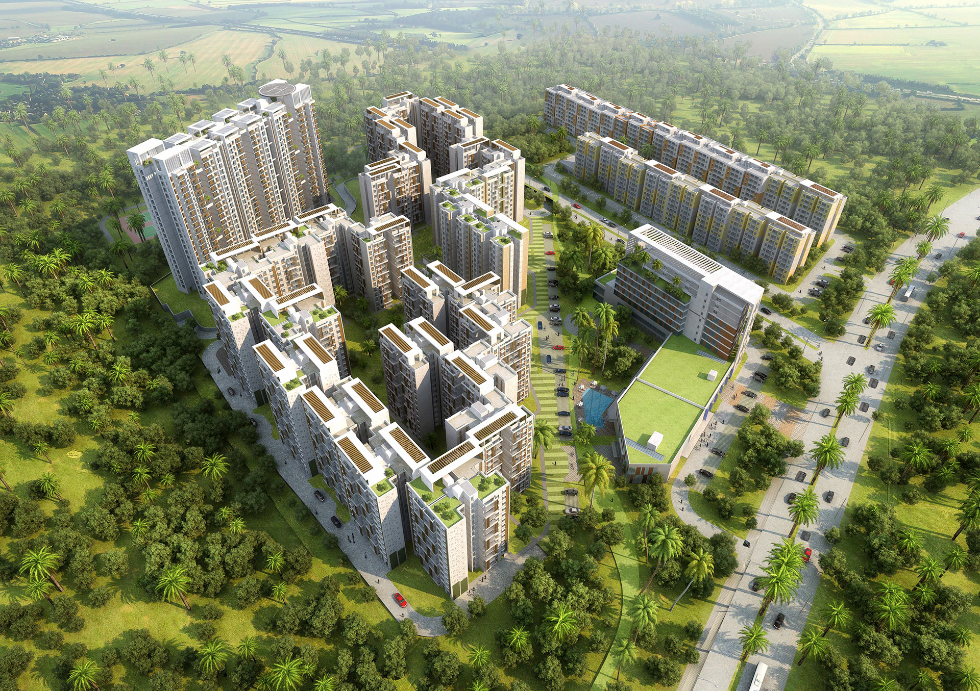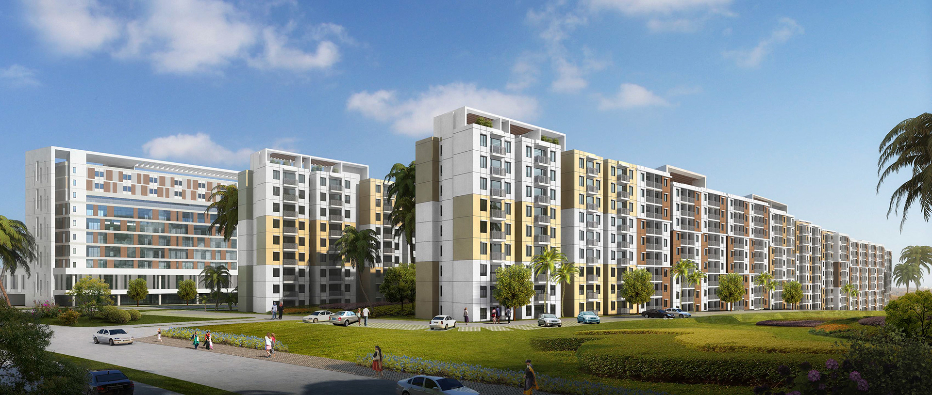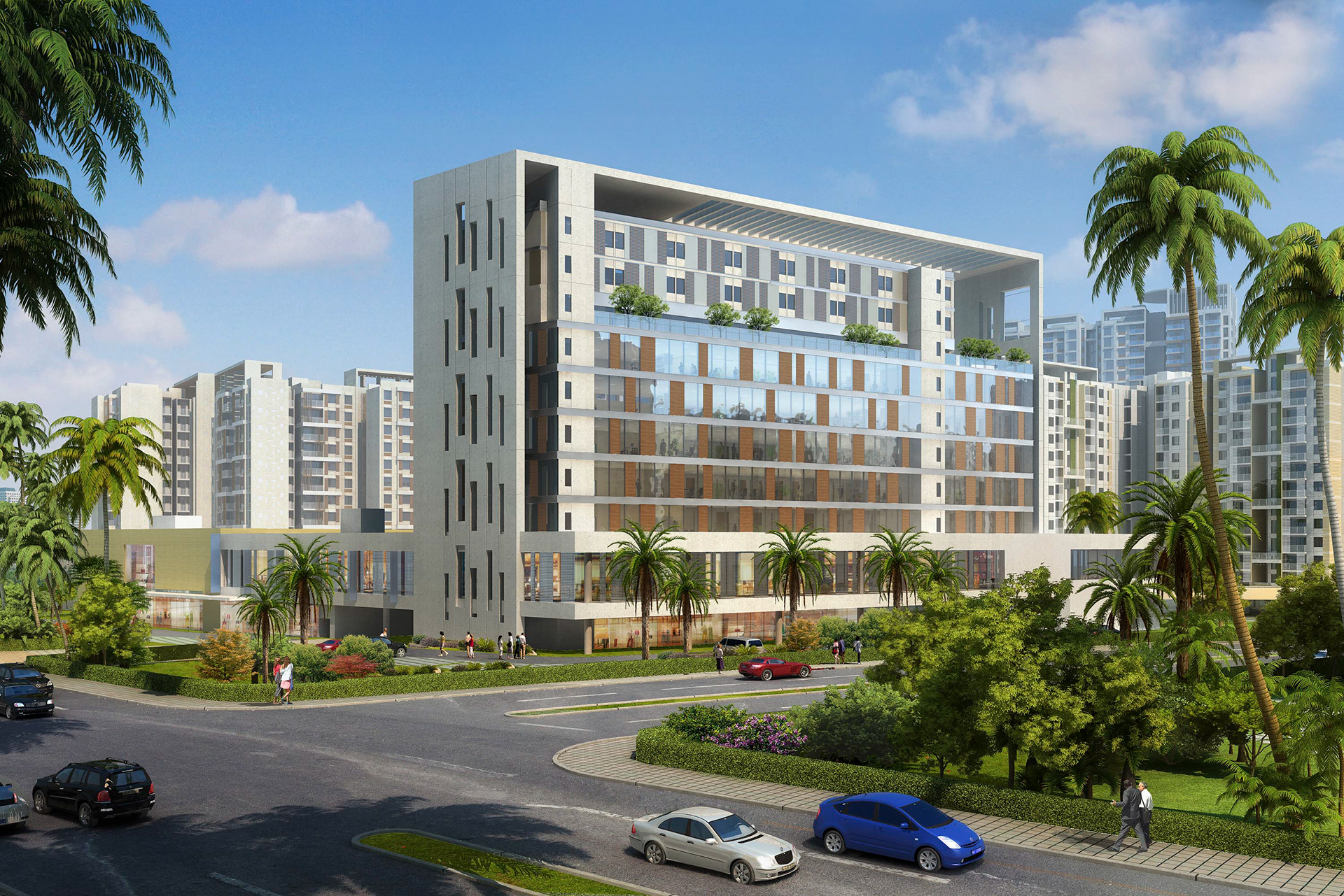 This campus consists of hotel, affordable housing, senior housing, two and three room living units. The challenge was to create a most optimum layout in view of tight budget and abundant FAR available